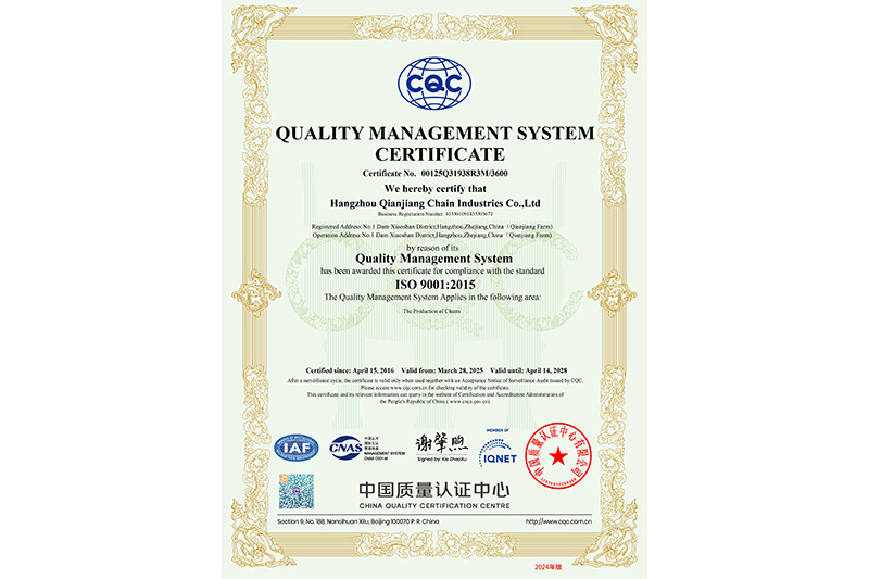 Certificat de système de gestion de la qualité