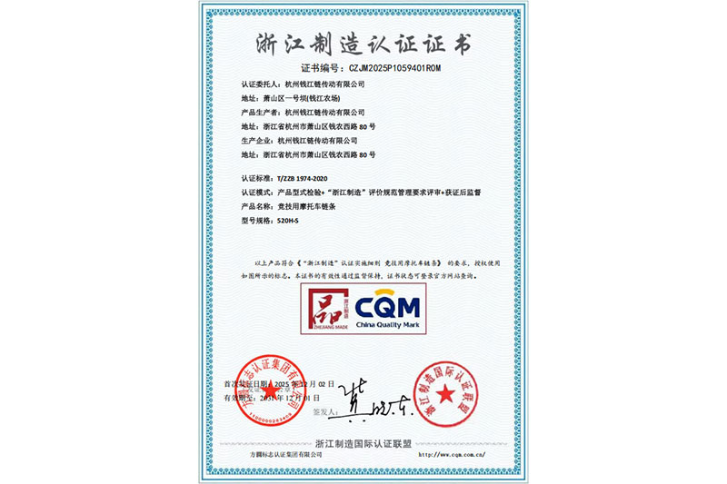 Certificat de certification de fabrication du Zhejiang