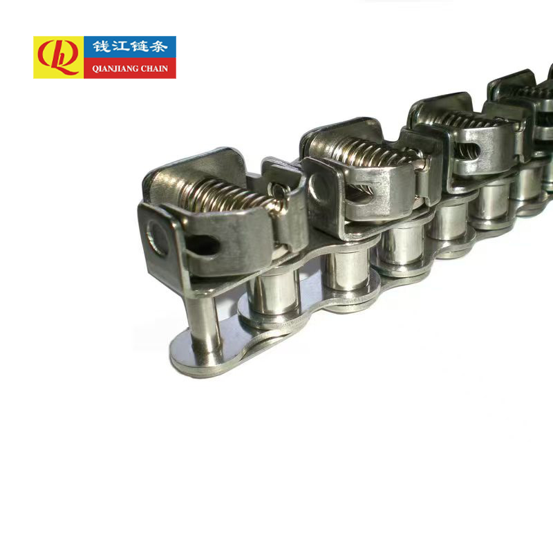 Produite par Qianjiang Chain Factory, la chaîne de serrage en acier inoxydable est un type spécial de chaîne de convoyeur élastique. Sa fonction principale n'est pas seulement la transmission, mais plus important encore, le serrage ferme et stable de la pièce pendant le processus de transmission. Elle est très différente des chaînes de convoyeurs ordinaires en termes de structure et d'application. .