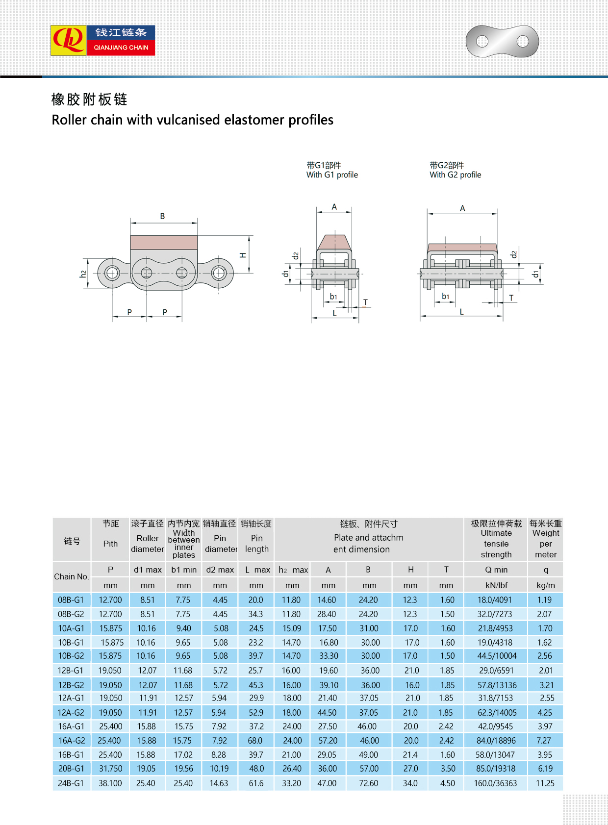 Dans la production automatisée industrielle moderne, la stabilité et l’efficacité du système de transport des matériaux affectent directement la capacité et la qualité globales de la production. En tant que solution intégrée de transmission et de convoyage haute performance, la Chaîne à rouleaux avec profils en élastomère vulcanisé est largement utilisée dans l'agroalimentaire, le tri logistique, les machines agricoles, les équipements d'emballage et autres domaines, et se distingue par sa résistance à l'usure, son absorption des chocs et ses propriétés antidérapantes. La chaîne à rouleaux avec profils en élastomère vulcanisé est basée sur la chaîne à rouleaux standard et utilise un processus de vulcanisation avancé pour lier fermement le caoutchouc de haute qualité ou l'élastomère thermoplastique à la plaque de chaîne extérieure ou à la plaque d'appui de la chaîne. Cette structure composite conserve non seulement la haute résistance et la durabilité de la chaîne métallique, mais lui confère également les avantages uniques suivants :