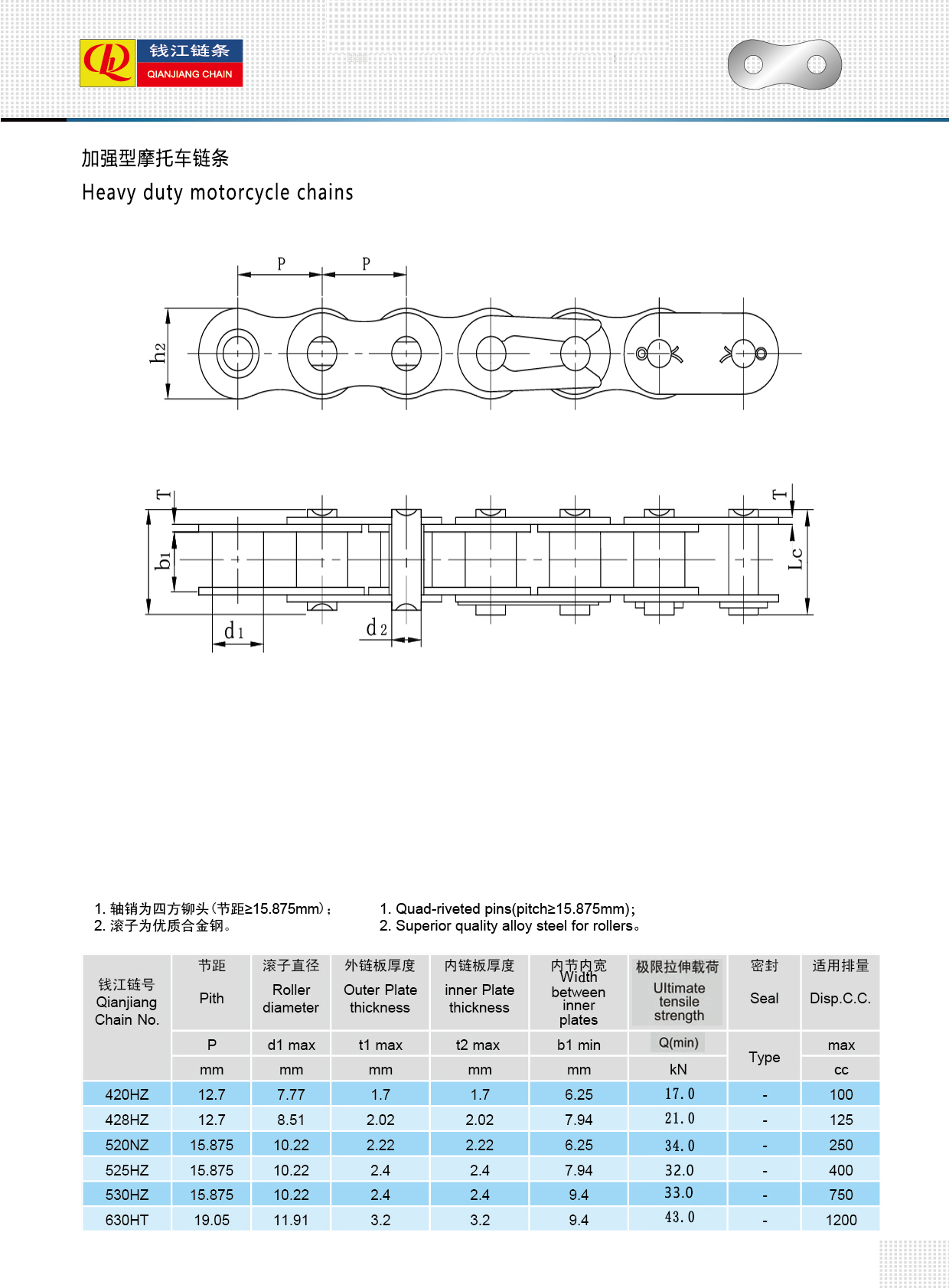 Conçus pour les motos lourdes, ils offrent une capacité de charge et une transmission de puissance fluide, garantissant une conduite plus sûre et plus efficace, même dans des environnements exigeants. La structure robuste résiste à l'étirement et à la corrosion, réduisant ainsi les besoins de maintenance et prolongeant la durée de vie.