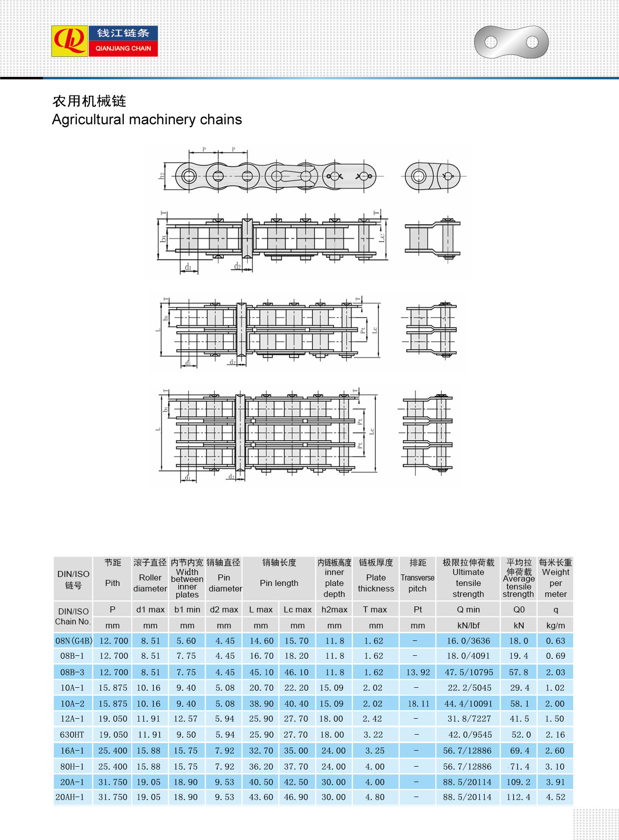 Diverses spécifications Chaînes pour machines agricoles