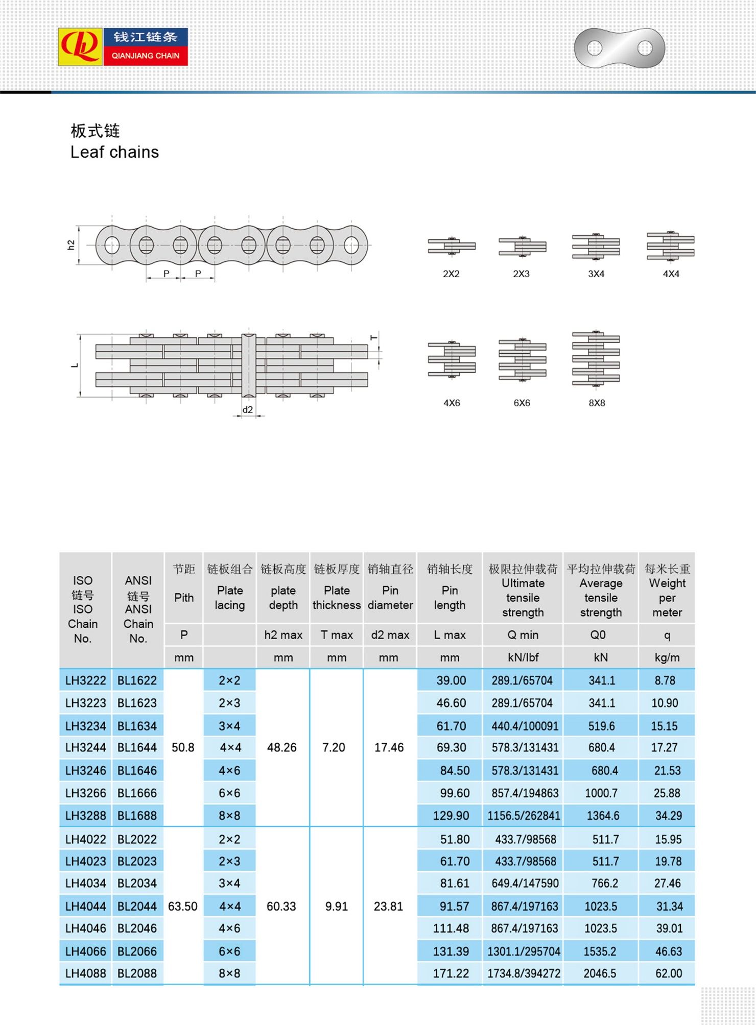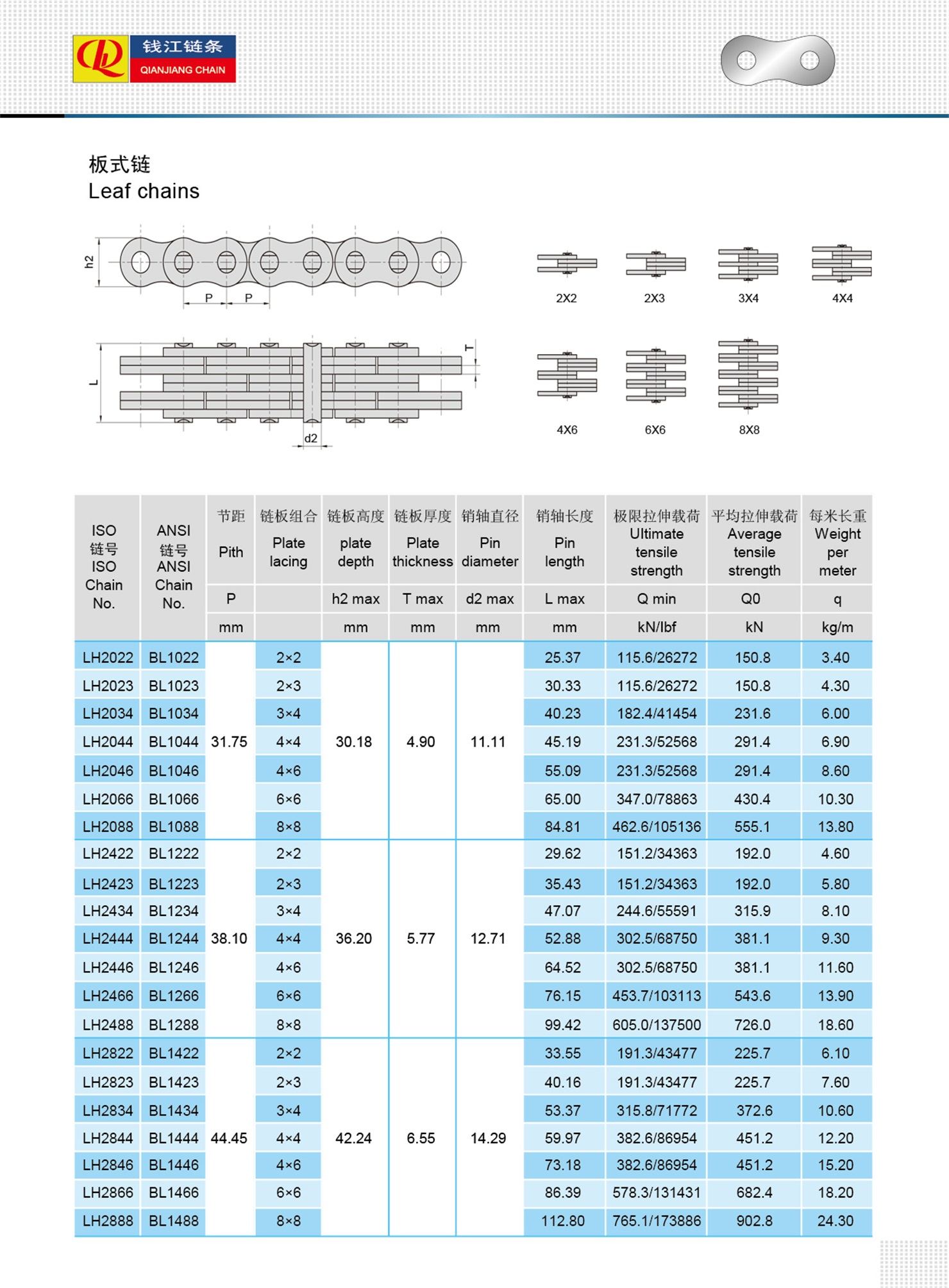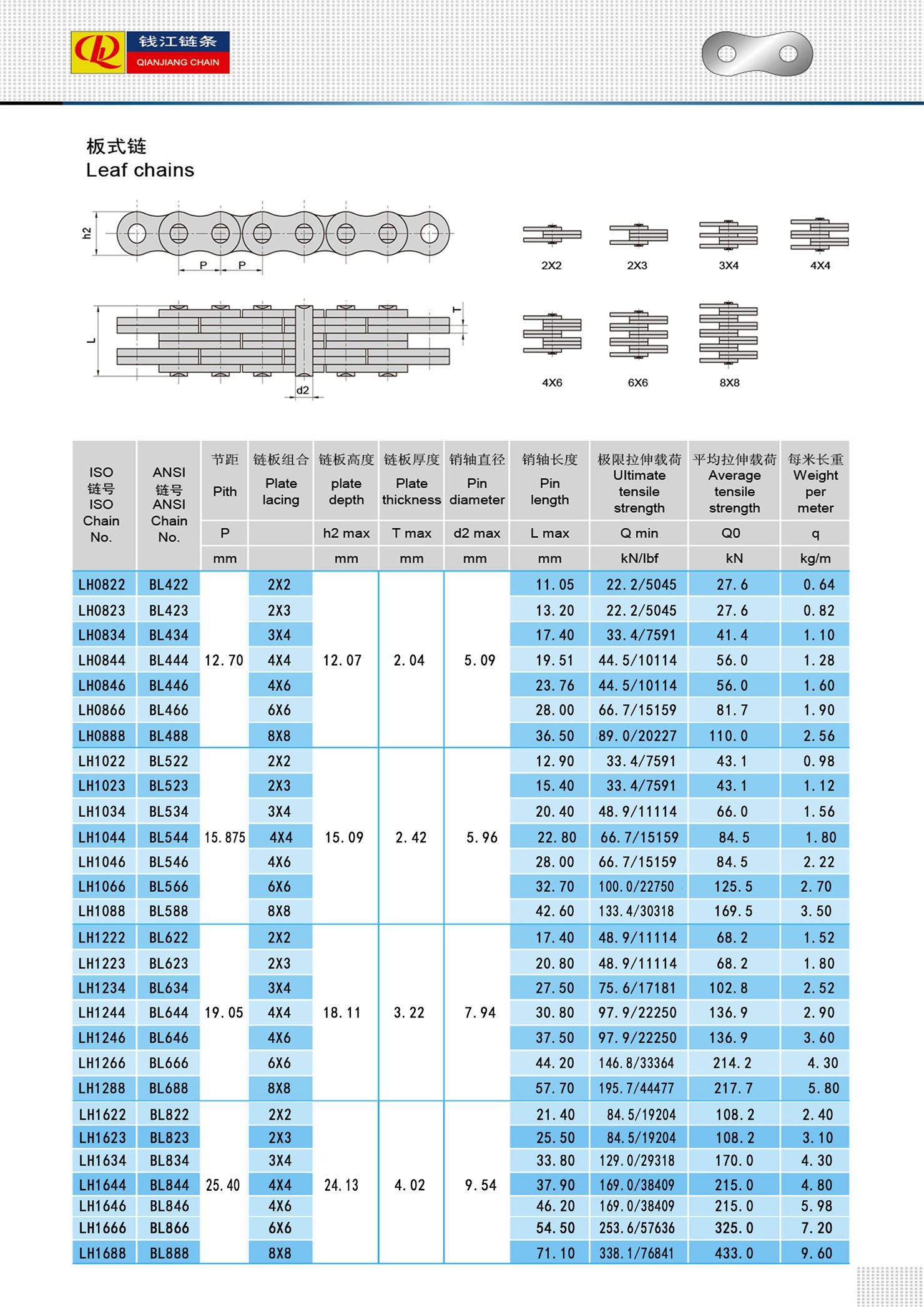 Chaînes à feuilles durables et résistantes à l'usure LH (série BL)